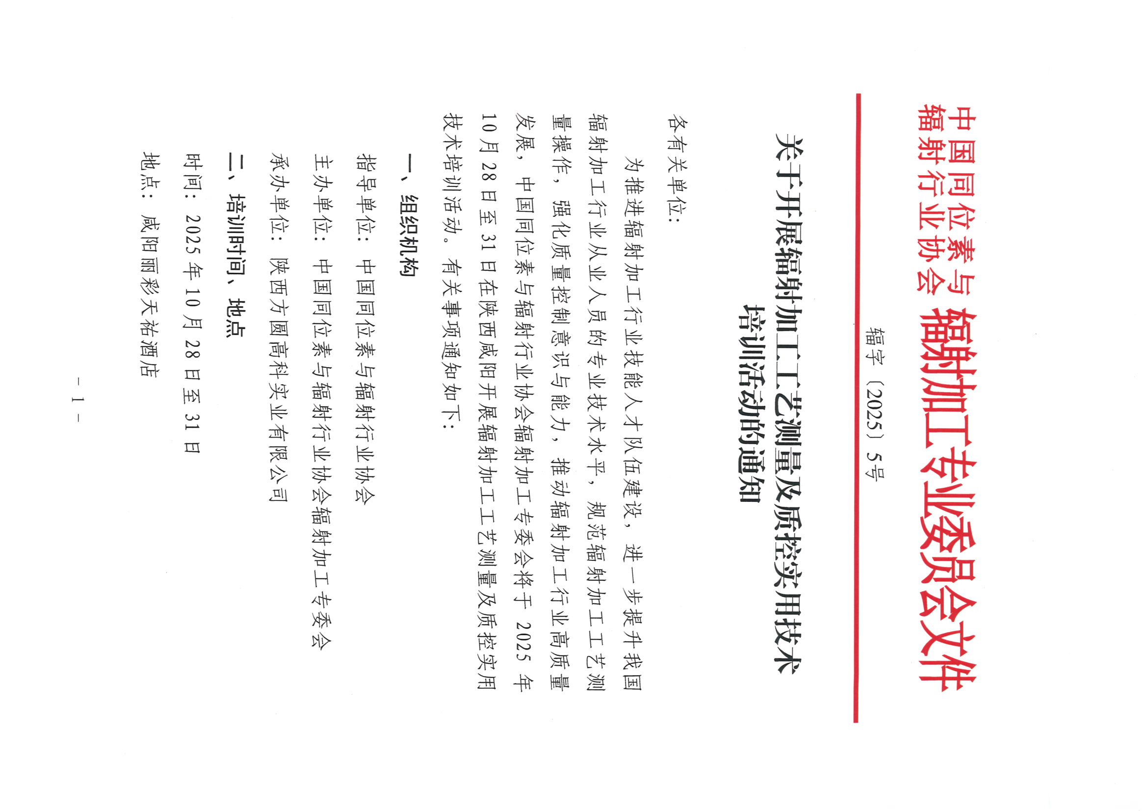 电子版通知及附件下载:关于开展辐射加工工艺测量及质控实用技术培训活动的通知.PDF