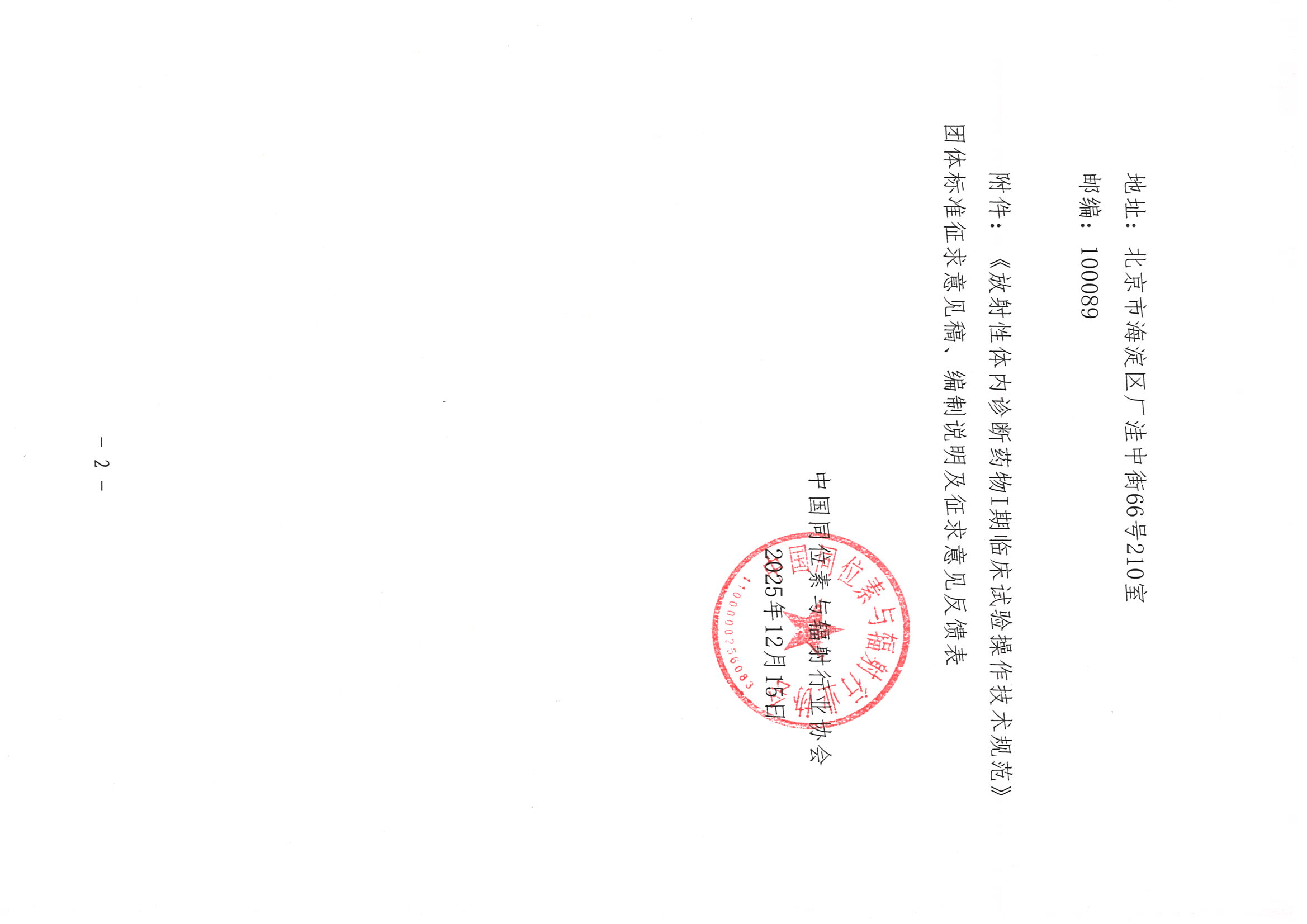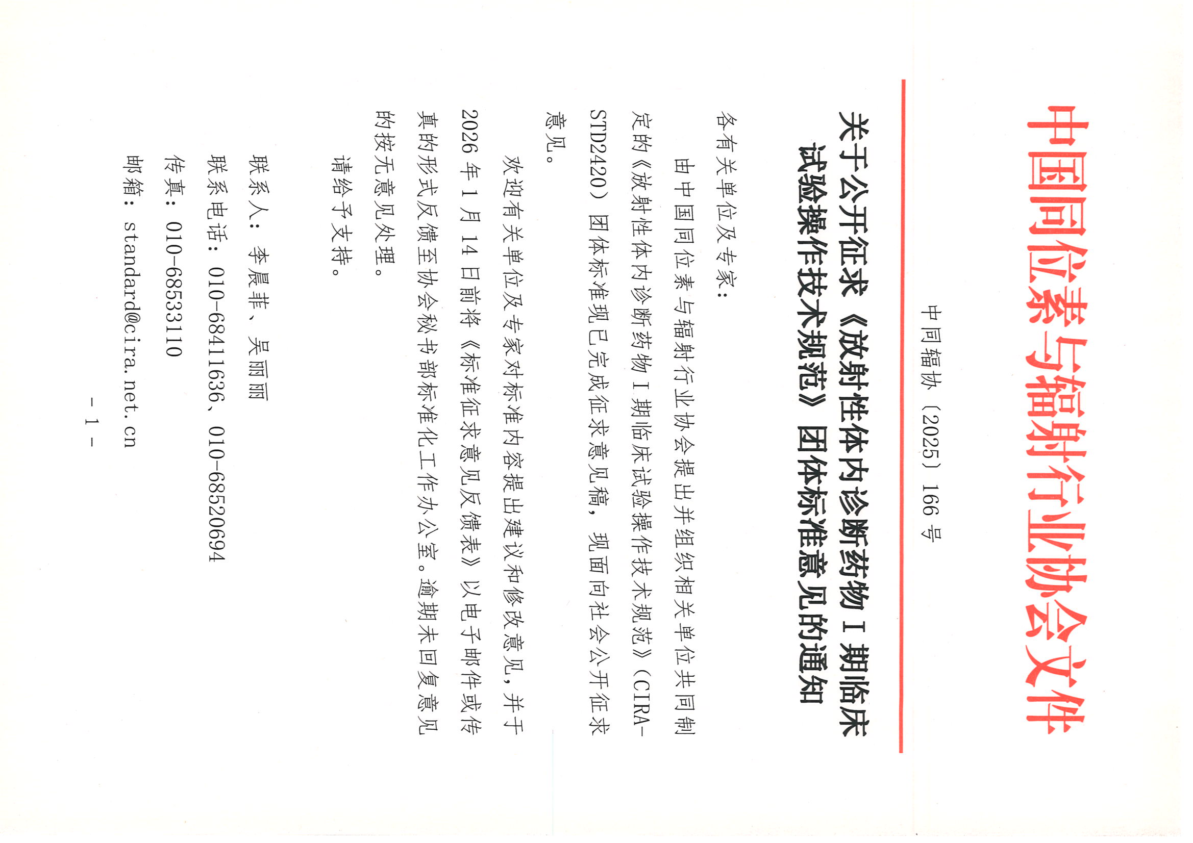 通知及附件下载:《放射性体内诊断药物I期临床试验操作技术规范》团体标准征求意见稿、编制说明及征求意见反馈表.zip